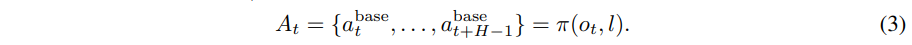 이후 base policy $\pi$로부터 각 step에서 action chunk의 inference 결과를 구합니다: